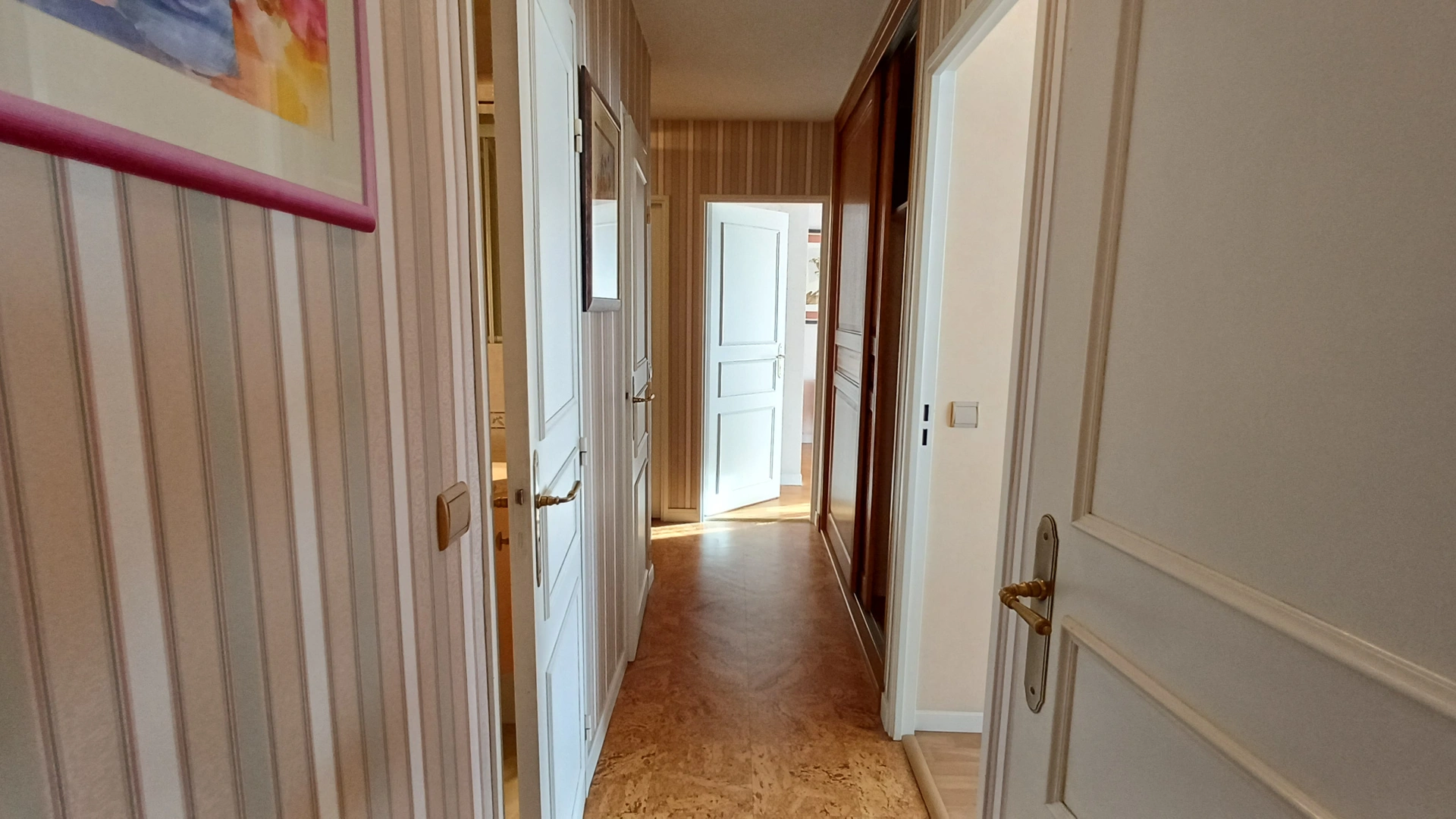 Trois chambres spacieuses, dont une communicante avec le balcon sud.