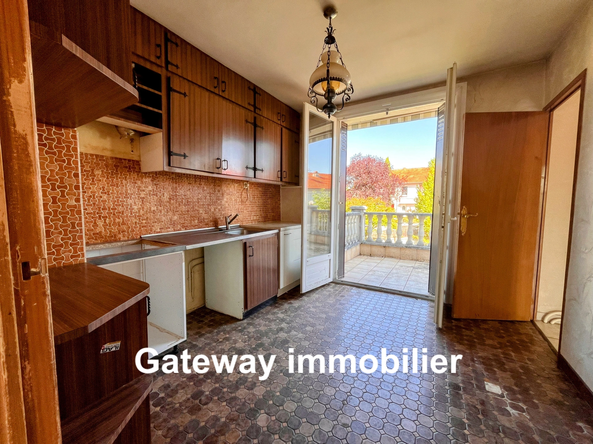 Une cuisine séparée donnant sur une agréable terrasse de 11m2