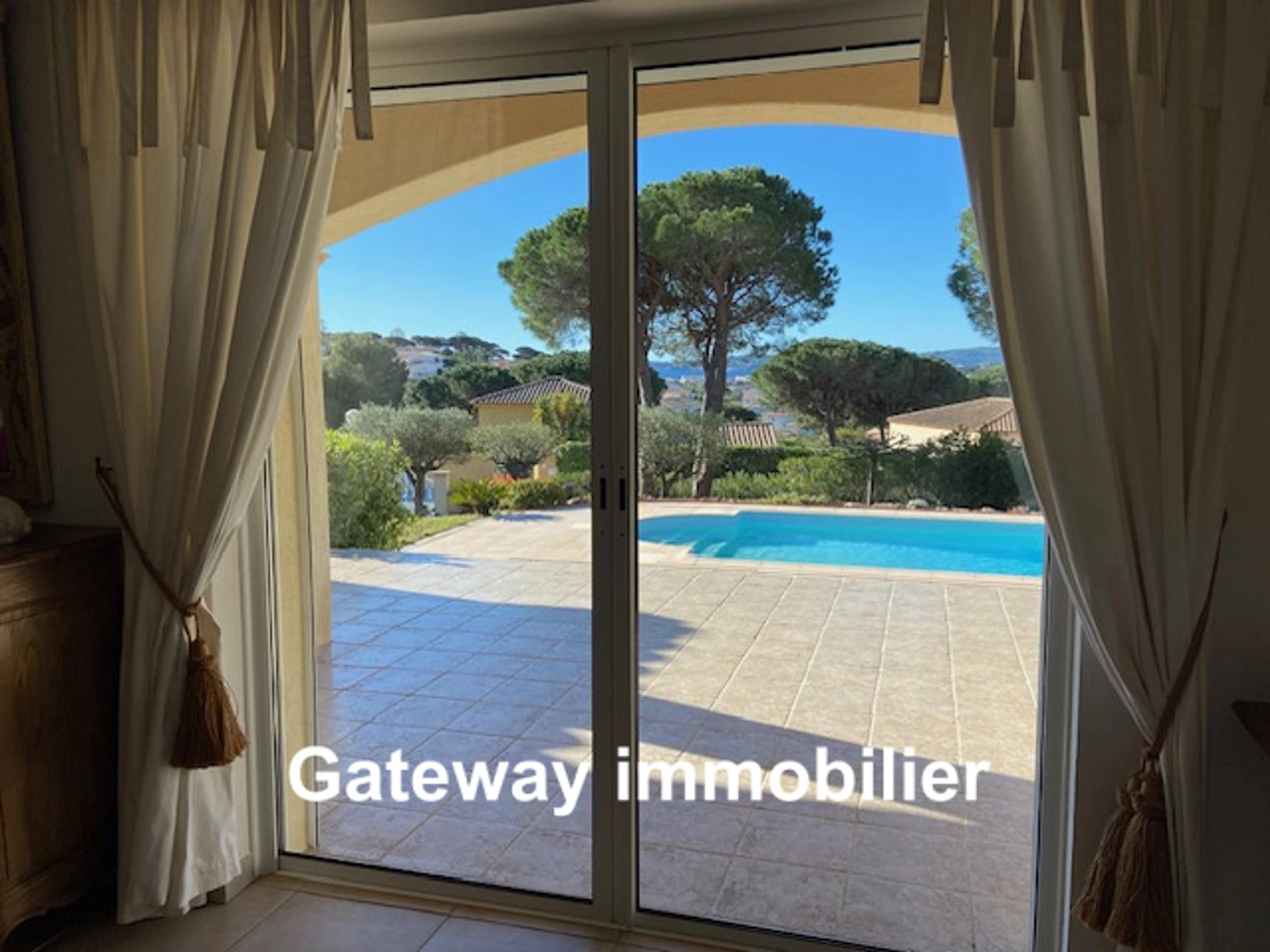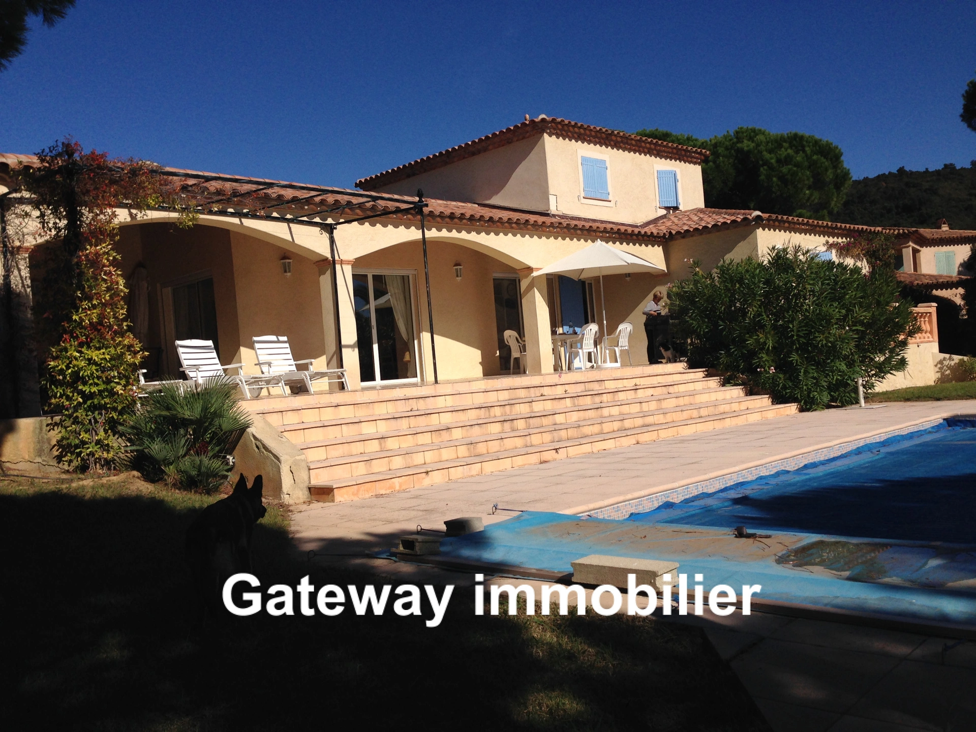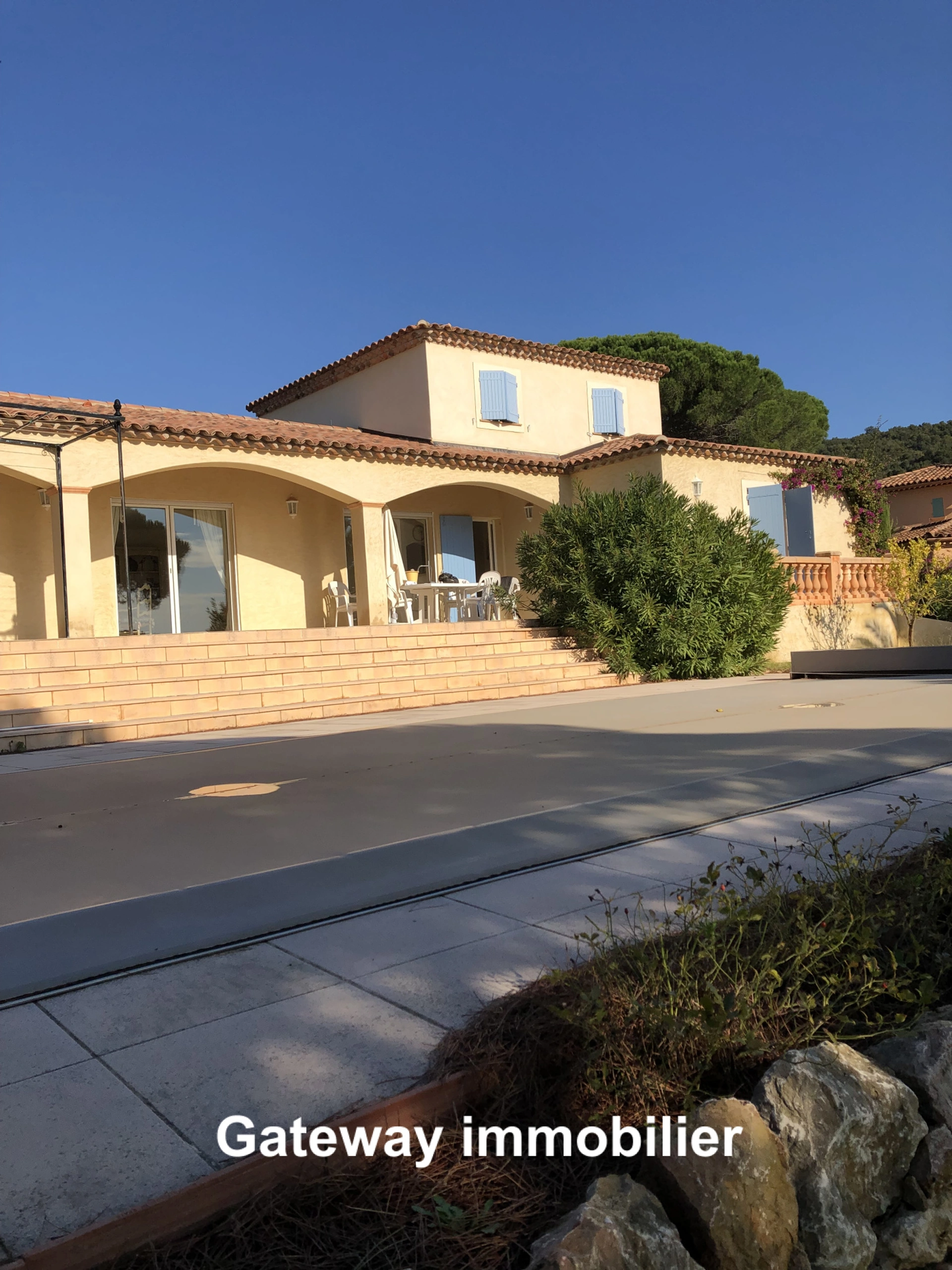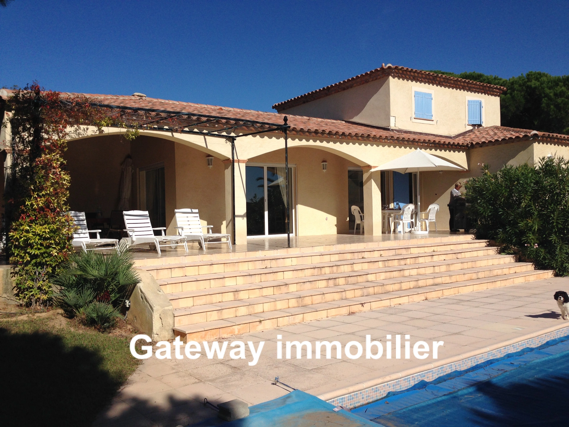 A vendre à Sainte Maxime (83) une villa avec piscine et vue sur le golfe de saint-Tropez, proche des commerces et dans un environnement calme et confortable. Vous entrez dans la propriété par un chemin au milieu d'un jardin arboré de 1200m2 avec une piscine entourée de vastes terrasses. La maison est équipée d'une très grande et lumineuse salle à manger/salon, cuisine équipée ouvrant sur les terrasses par de large surface vitée coulissantes et vue sur le golfe. Coté chambres, une master de plain-pied avec salle d'eau et wc attenant et à l'étage deux autres chambres avec salle d'eau et wc attenant.